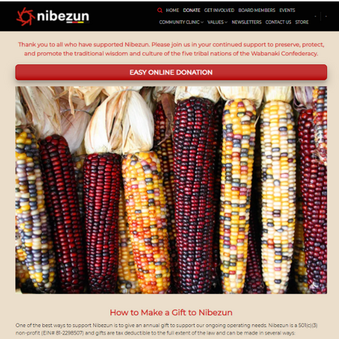 Nibezun is a native-led nonprofit organization that preserves and restores Wabanaki traditions. They reside on sacred Wabanaki land along the Penobscot River in Maine, where they celebrate culture as medicine, provide an inclusive space for healing, and promote sustainability for all people and future generations. While they have recently completed fundraising to install solar panels at their facility, they also have an option to make an annual gift on their website to help support their ongoing operational needs. Donations can be made here.